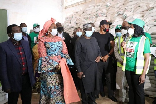Our correspondent reports that food items presented includes 5,745 bags of rice ,5,745 bags of beans ,5,745 bags of maize ,salt ,Soya oil amongst other items.